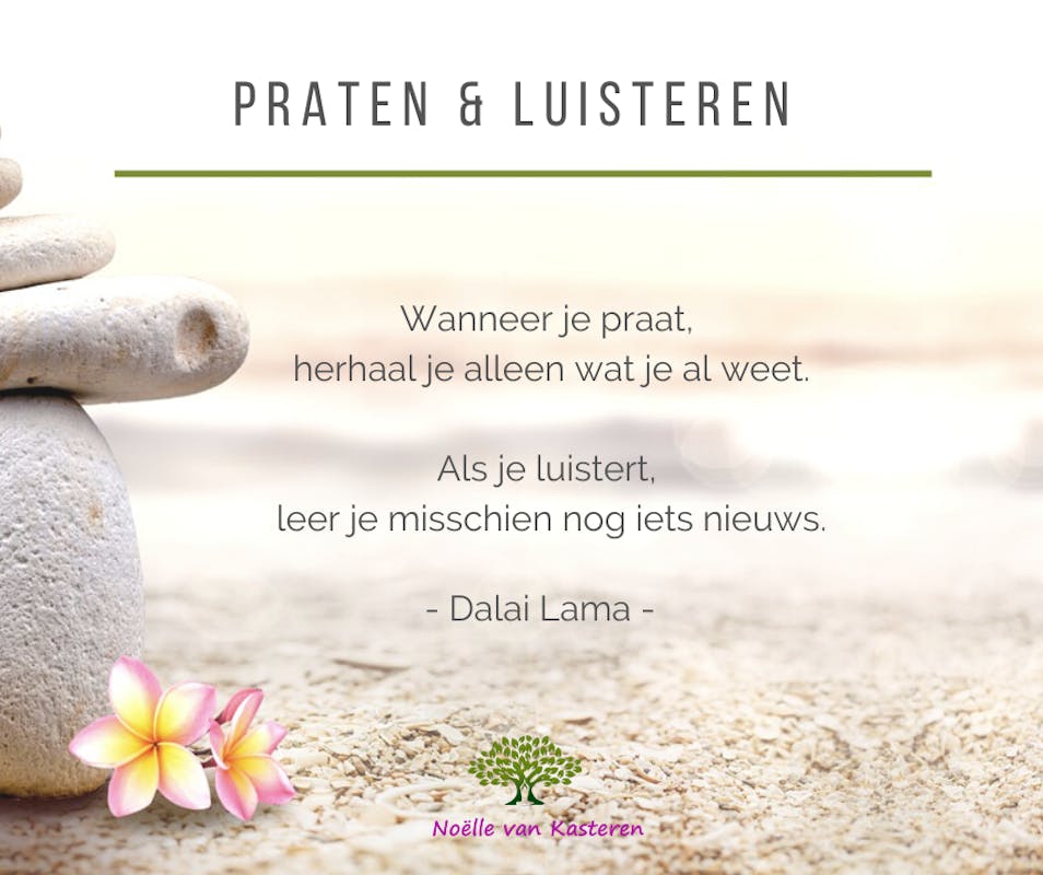 - Ben ik in staat om te luisteren? En dan bedoel ik niet alleen de woorden van de ander horen, maar écht luisteren naar wat de ander zegt?