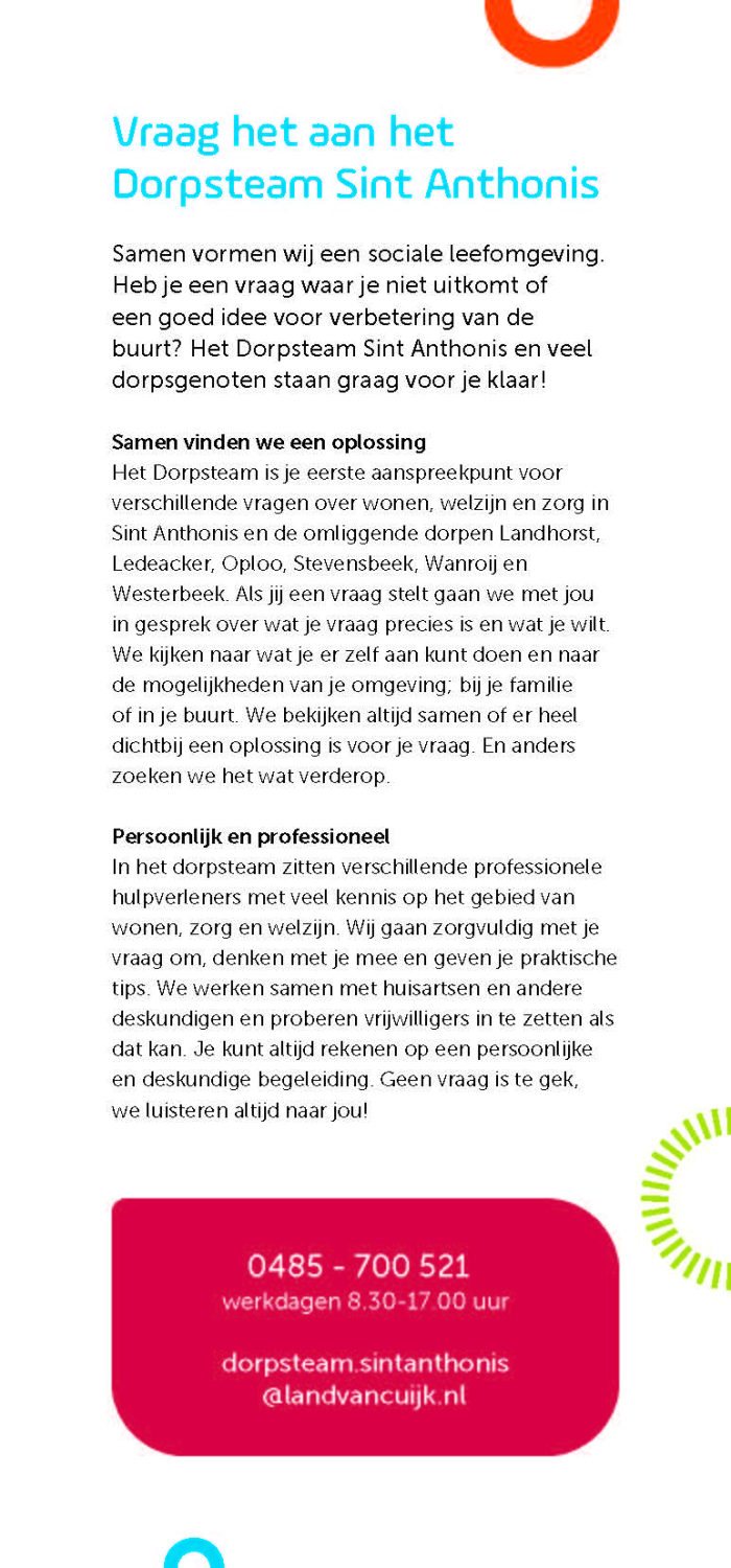 Vraag het aan het dorpsteam, wij staan klaar voor jou.