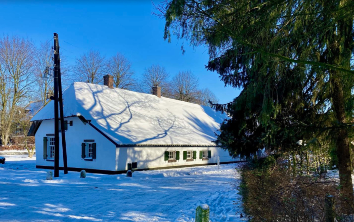 13 februari, Theo Minten. Oude glorie verpakt in een dikke laag sneeuw, het oudste witte huis van SintTunnis 8 oude boerderij bij Piet de Rijt.