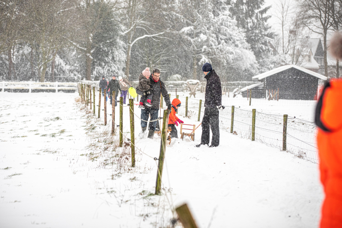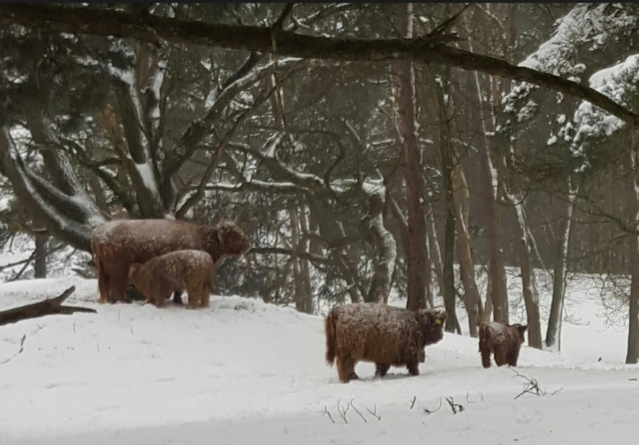08-02-2021 Bob Vloet, De staatsbossen tijdens een slee tocht met de kinderen door de bossen in Sint Anthonis. De kinderen vonden het erg spannend dat ze onverwachts de Schotse Hooglanders tegen kwamen, het was prachtig om de bossen in een wit jasje te zien.