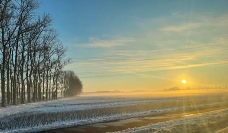 Monique Gerrits. "De morgenstond heeft goud in de mond." Deze foto is gemaakt vanaf het Sint Patricks pad, vrijdagochtend om 7.45 toen ik naar mijn werk in Ledeacker liep. Zie ook onderstaande foto.