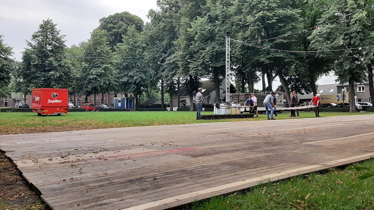 Voorbereidingen voor het brinkterras. Er wordt hard gewerkt. Zelfs voor Max Verstappen hoef je niet thuis te blijven! Er komt een groot scherm om samen te kijken naar Max!