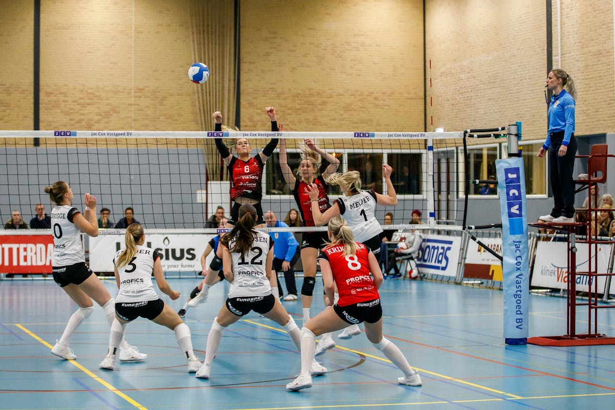 In set 4 namen de bezoekers direct een aantal punten voorsprong. In de belangrijke eindfase kwam de sterk ingevallen Jule van Hout aan service. Met een servicebeurt van maar liefst 7 ballen keerde de thuisploeg de set om. Met 25-23 werd de wedstrijd in evenwicht gebracht: 2-2.