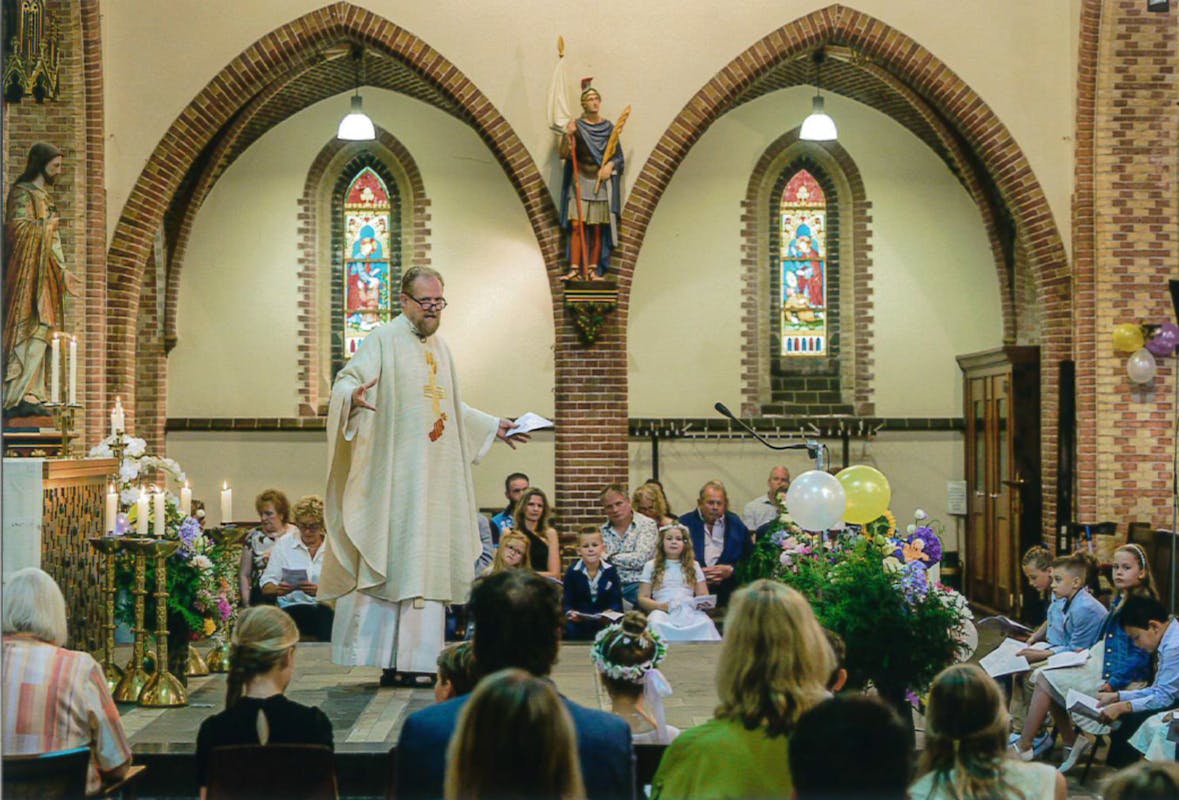 kunt u de vieringen thuis terugkijken. Op een eenvoudige manier met mobiele telefoon opgenomen, dat het geluid niet optimaal is, maar we wel goed beeld hebben, is de liturgie in de parochie te volgen.